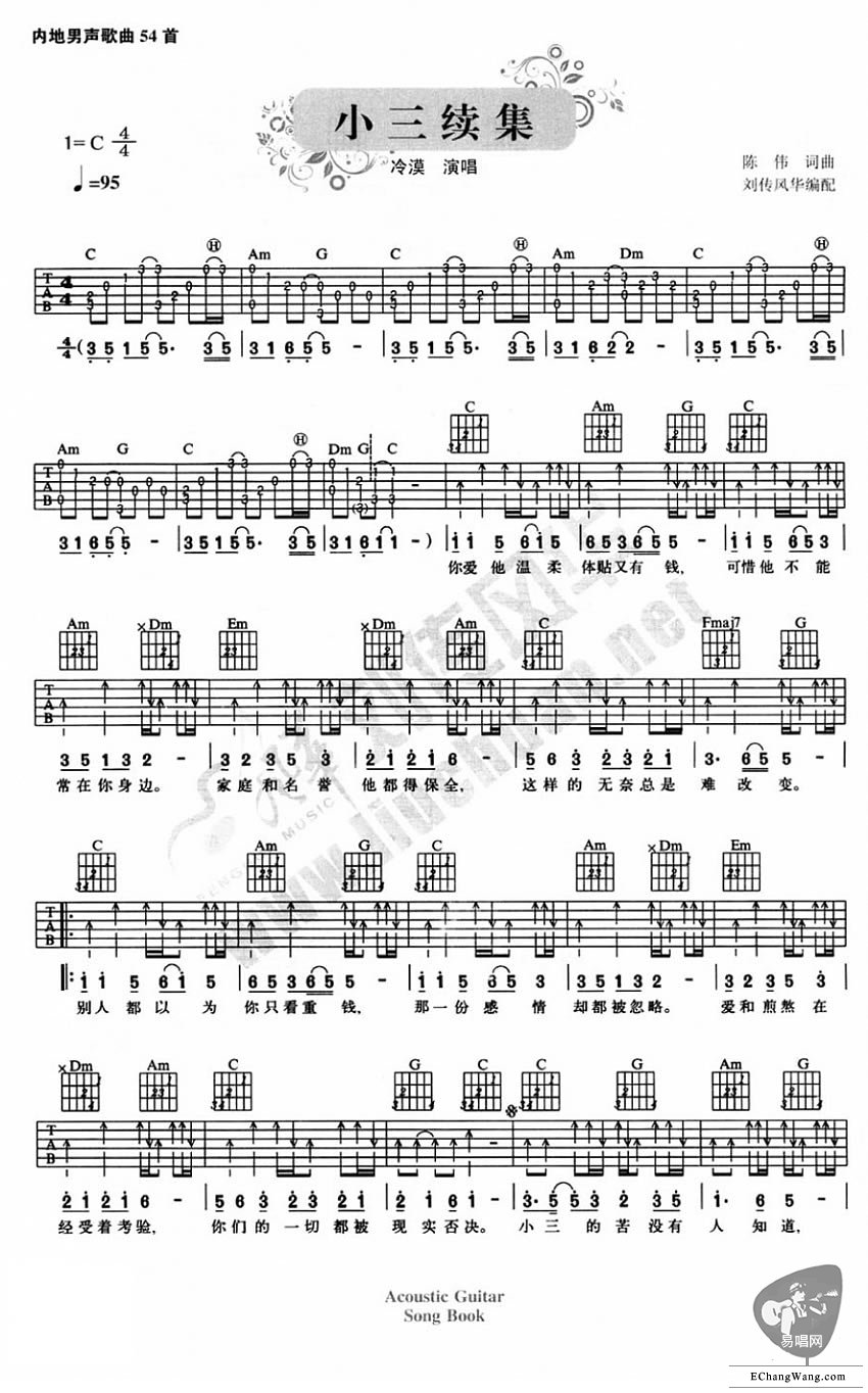 小三续集吉他谱 冷漠 C调弹唱谱 六线谱