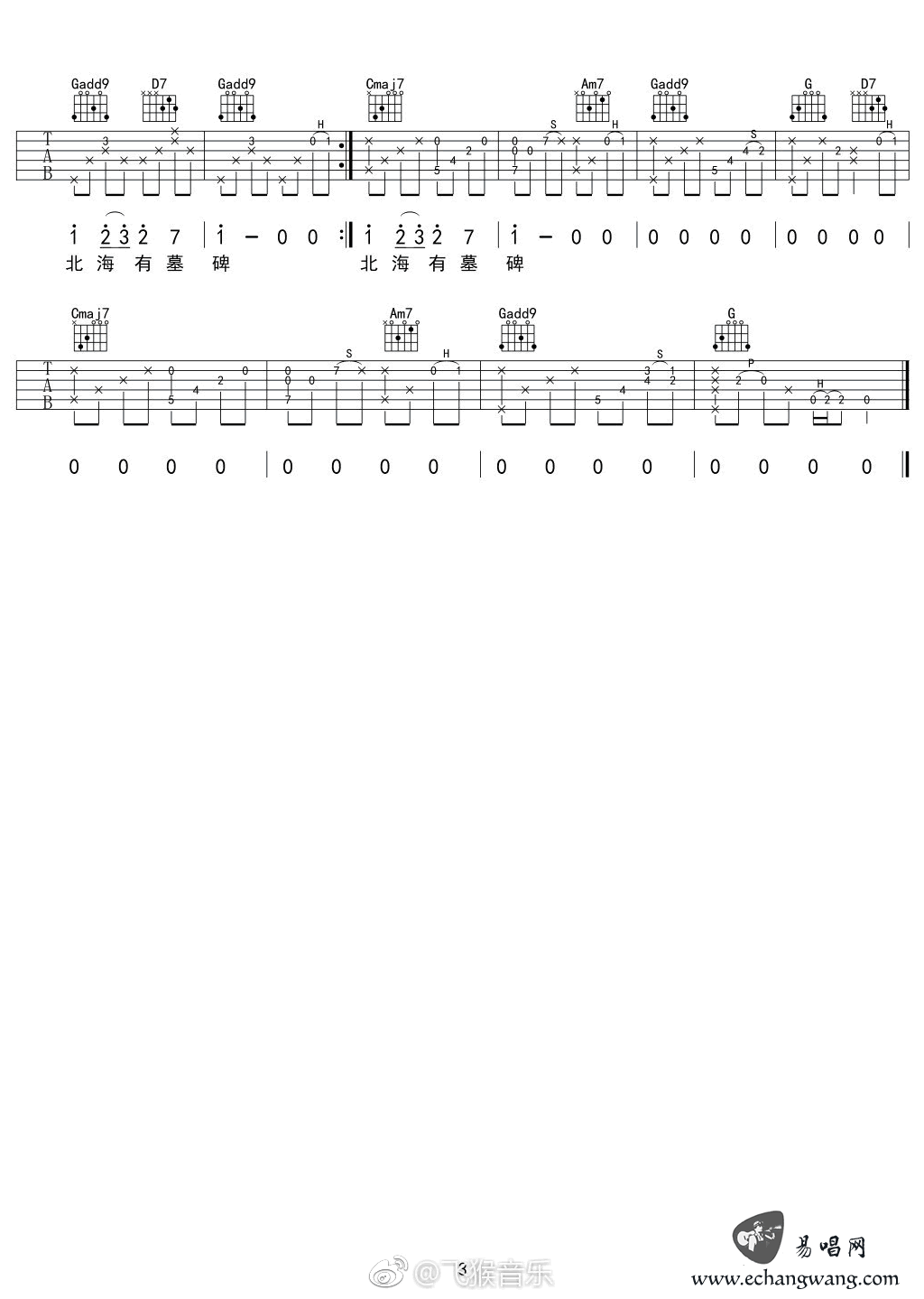 四块五吉他谱_隔壁老樊_C调六线谱_高清