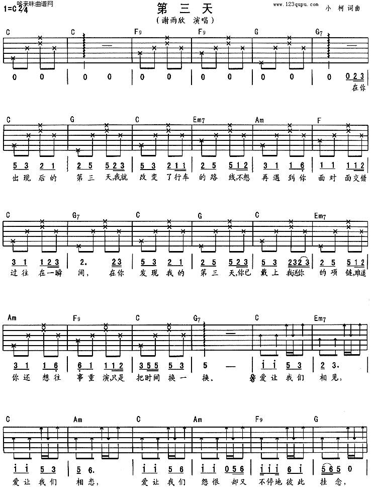 第三天 (谢雨欣)吉他谱