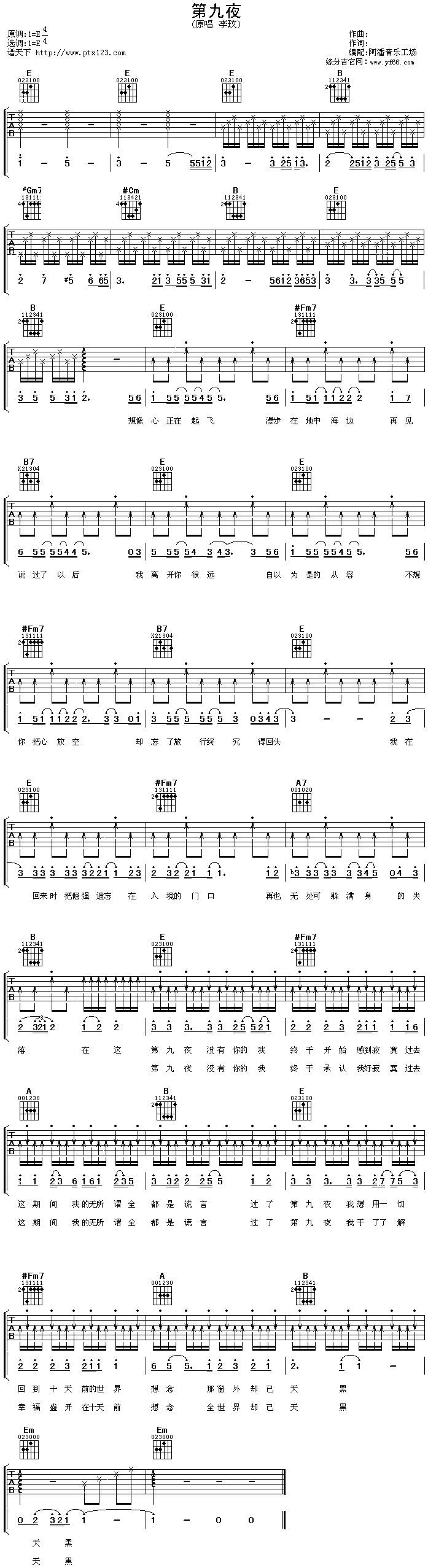 第九夜吉他谱