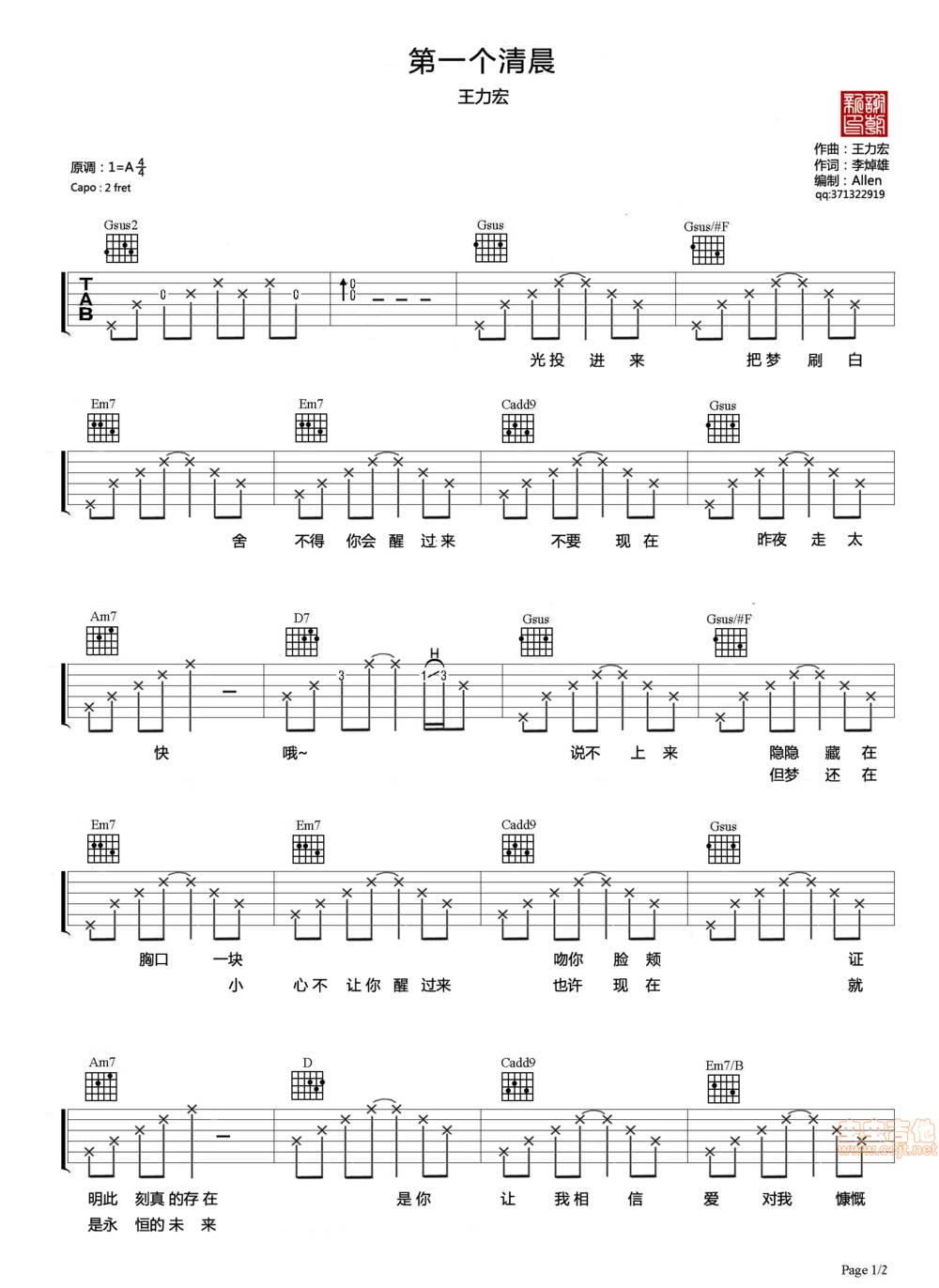 红豆指弹谱_王菲_吉他独奏谱_指弹教学